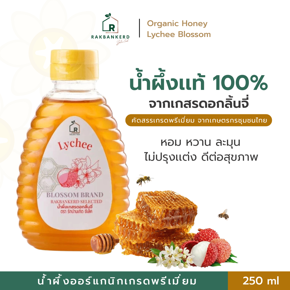 You're viewing: น้ำผึ้งเกสรดอกลิ้นจี่ Original price was: ฿260.00.Current price is: ฿135.00.